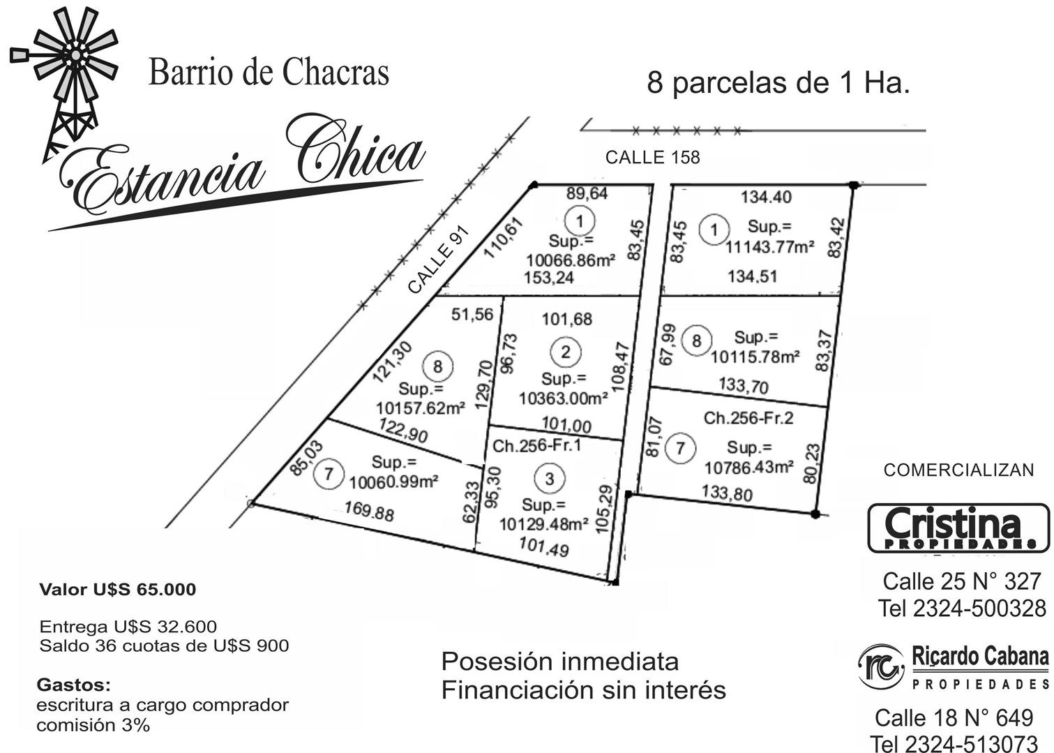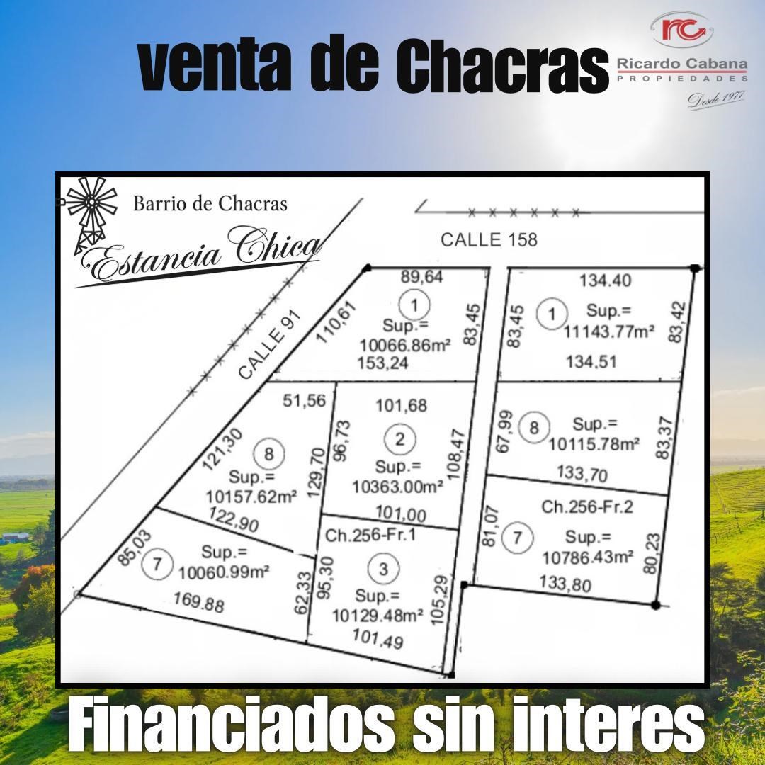 VENTA DE CHACRAS con FINANCIACIÓN SIN INTERÉS OPORTUNIDAD ÚNICA Queres vivir disfrutando la naturaleza ? tranquilidad de mercedes te tenemos la mejor opción para vos Barrio de chacras ESTANCIA CHICA Valor: U$s 65.000 Financiación : SIN INTERÉS Entrega U$S 32.600 Saldo 36 cuotas de U$S 900 POSESIÓN INMEDIATA Te esperamos en calle 18 esq. 27 2324-513073